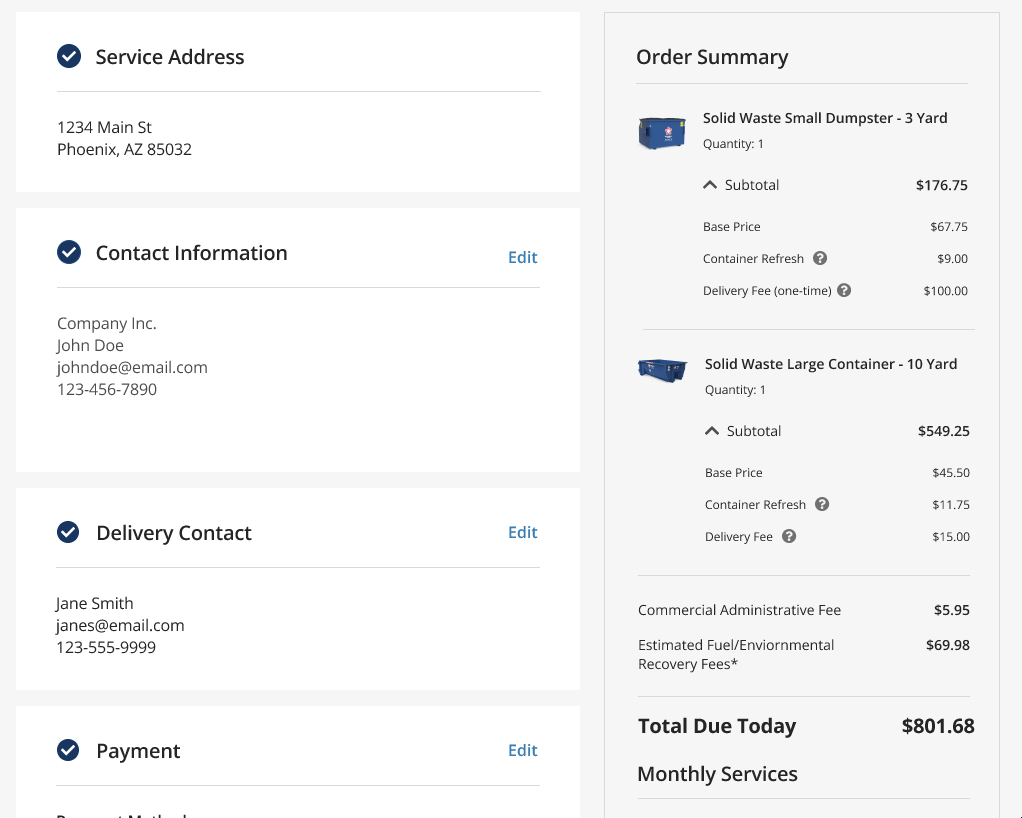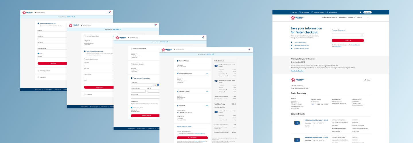 Republic Services serves millions of residential and commercial customers across North America. Customers needed a checkout experience that clearly communicated pricing, service availability, and order details. The existing checkout created friction and abandonment instead.